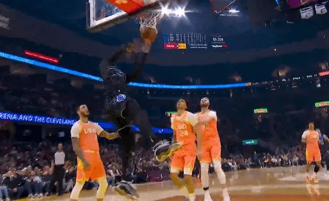 萨格斯反击接球单臂劈扣得手,魔术领先骑士到10分